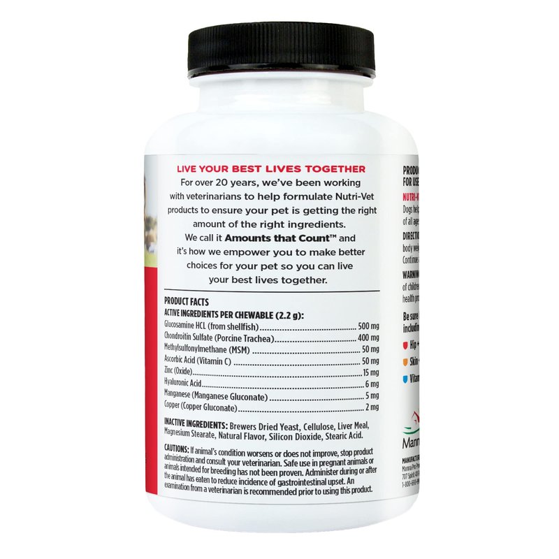 - DOG HIP & JOINT SUPPLEMENT - Nutri-Vet Hip & Joint Advanced Strength Chewable Tablets provide much-needed support for dogs with long-standing joint problems, especially large breed and senior dogs