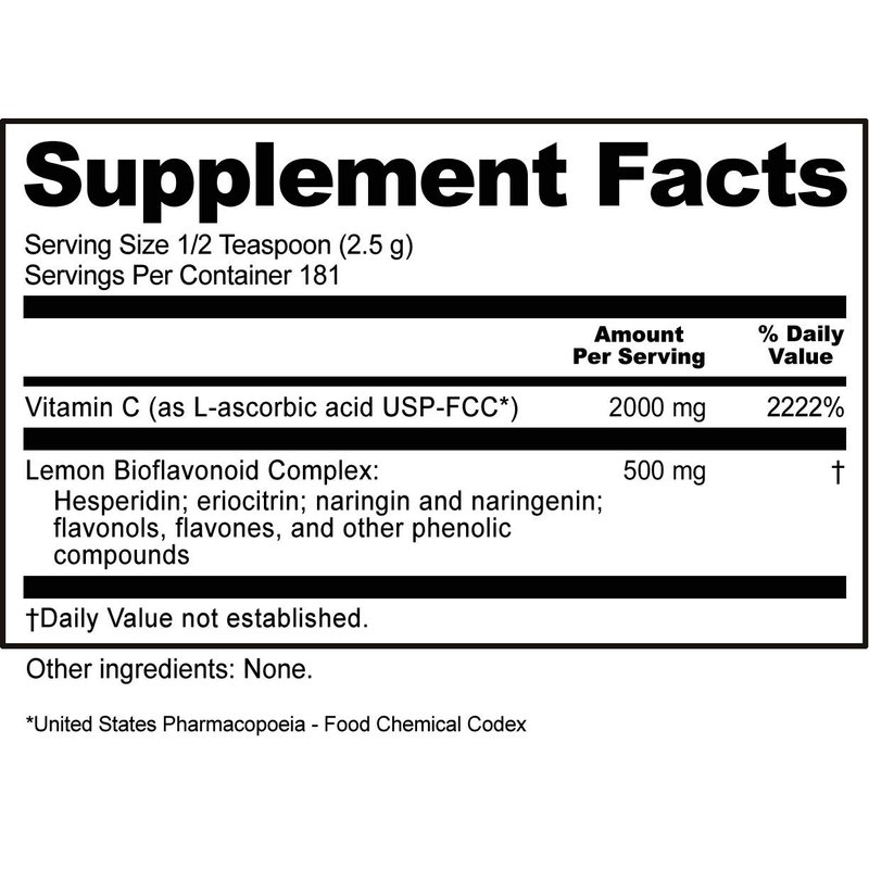 - POWERFUL IMMUNITY BOOSTER: our Ascorbic Acid with Bioflavonoids delivers a highly bioavailable, pharmaceutical grade crystalline powder vitamin C with bioflavonoids from lemons