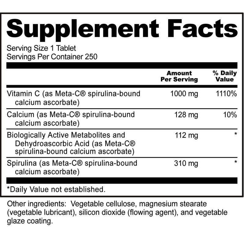 NutriBiotic Meta-C Tablets, 1000 mg Spirulina-Bound Vitamin C, 250 Count | Buffered with Calcium, Biologically Active Spirulina Metabolites & Lemon Bioflavonoids | Antioxidant & Collagen Support