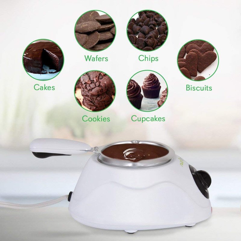 - PERFECT FOR HOMEMADE TREATS: This electric chocolate melting and warming fondue set is perfect for fondue parties, chocolate aficionados, dessert decorators, and creating homemade sweet treats such as cakes, cookies, biscuits, wafers, cupcakes, and more. Indulge in deliciously melted chocolate with ease and convenience.
