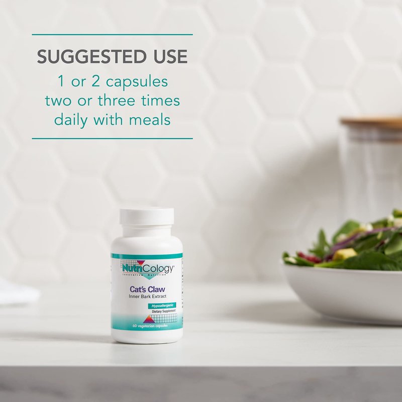 Nutricology Cat's Claw - Inner Bark Extract, Joint Health & Immune Support, Herbal Supplement, Organic, Vegetarian Capsules - 60 Count