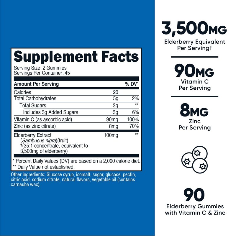 - 3,500mg Equivalent of Potent 35:1 Elderberry Extract in Each Gummy (100mg of 35:1 Elderberry Extract Per Serving)