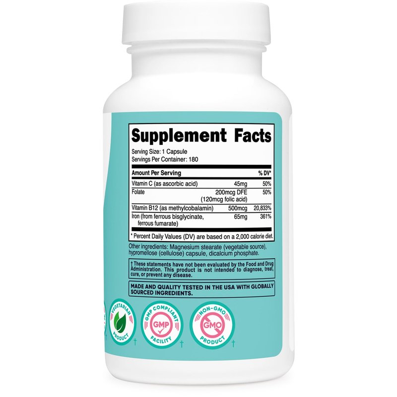 - 65mg of Iron in Every Capsule (180 Servings)