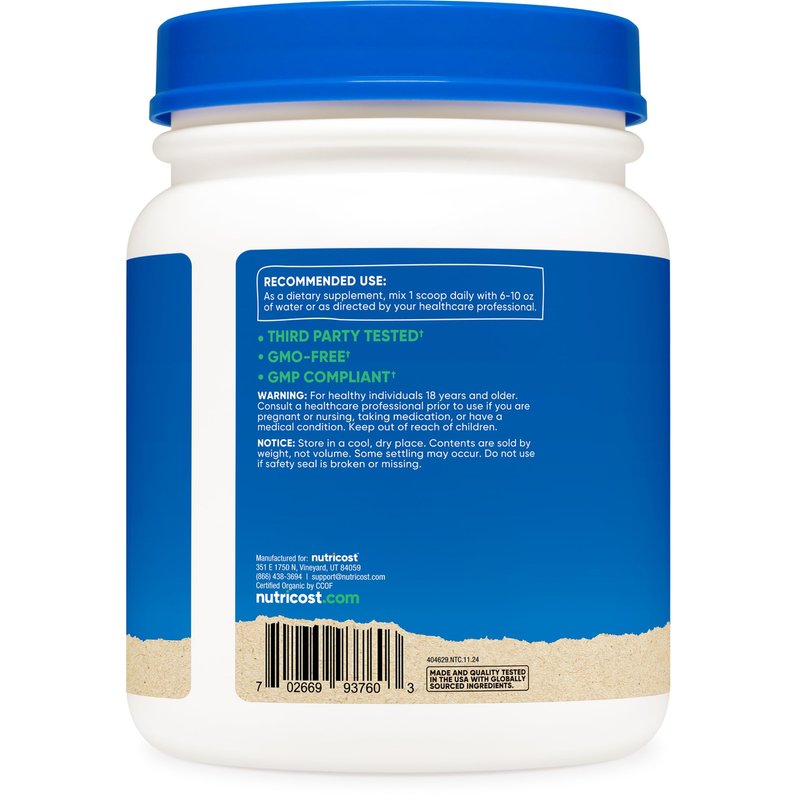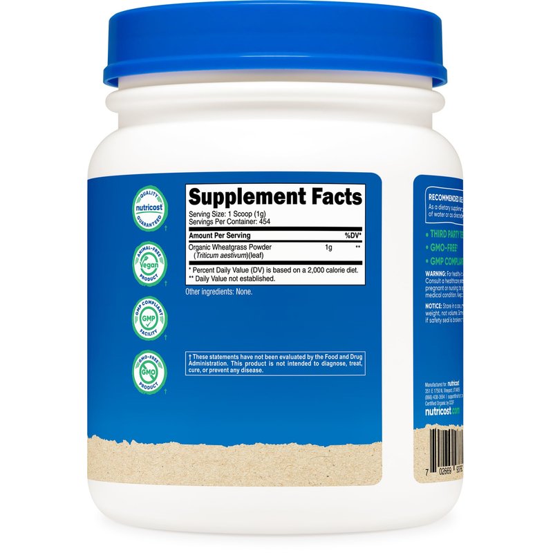 Nutricost high quality Organic Wheatgrass Powder is non GMO, vegetarian friendly, and all batches are tested by independent ISO accredited laboratories. Nutricost, located and headquartered in the USA, only uses the best ingredients to ensure maximum quality and to help you feel your best! By keeping our supplement recipes simple and clean, you get the best experience possible with Nutricost. Our supplements are manufactured in a GMP-compliant and FDA-registered facility; and each batch of every product is tested by independent, ISO-accredited laboratories. These statements have not been evaluated by the Food and Drug Administration. This product is not intended to diagnose, treat, cure, or prevent any disease.