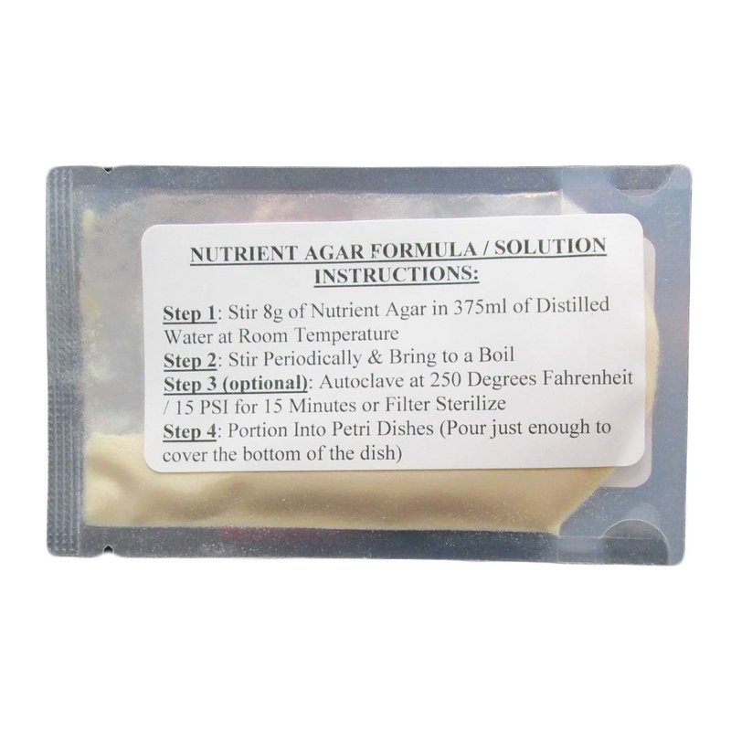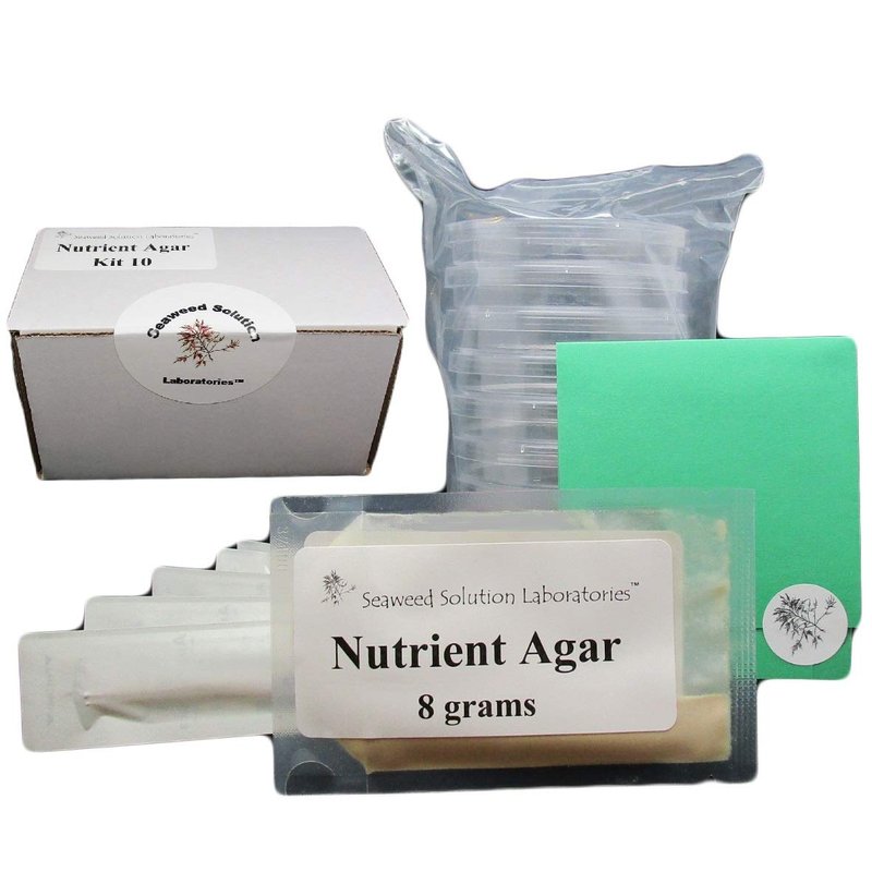 Nutrient Agar Kit Kit Includes Dry Ingredients Necessary to make 300ml of Solution Kit Includes 10 100mm x 15mm Sterile Petri Dishes with Lids Kit Includes 10 Sterile Cotton Swabs