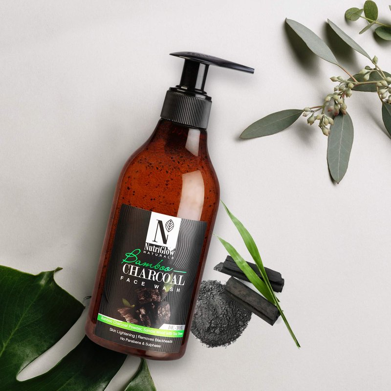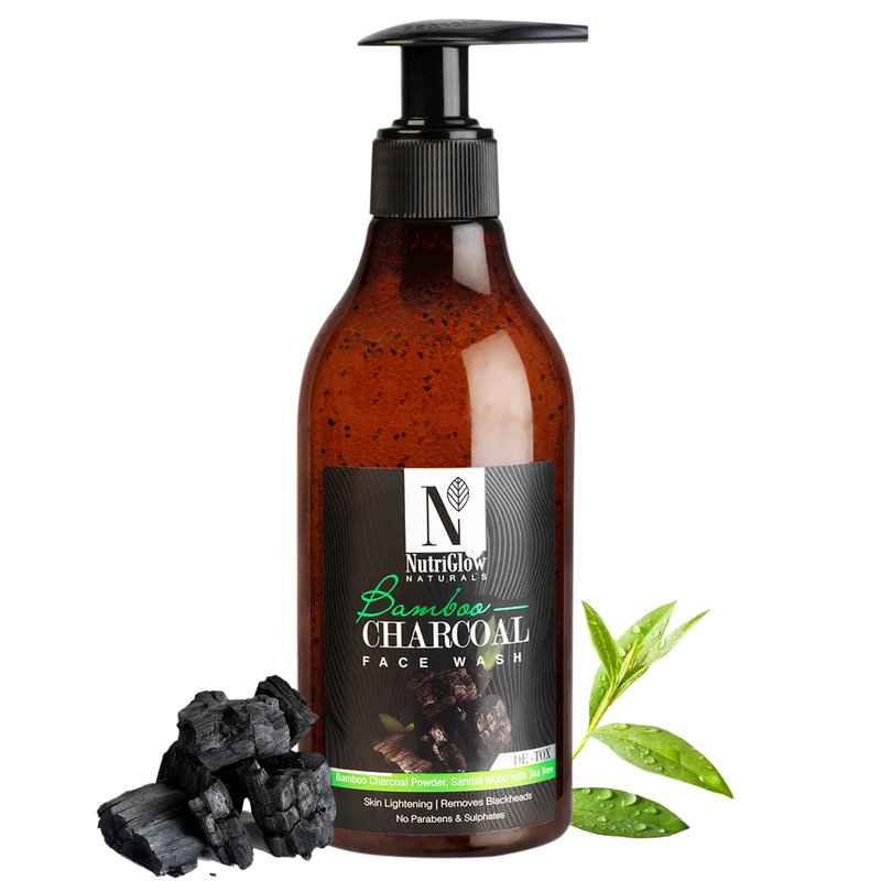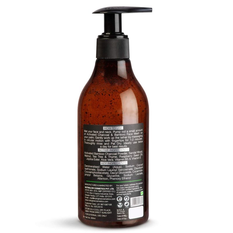 NutriGlow Natural's Bamboo & Charcoal Face Wash With Bamboo Charcoal Powder | Sandal Wood With Tea Tree | Skin Lightening | Removes Blackheads | _300 ML