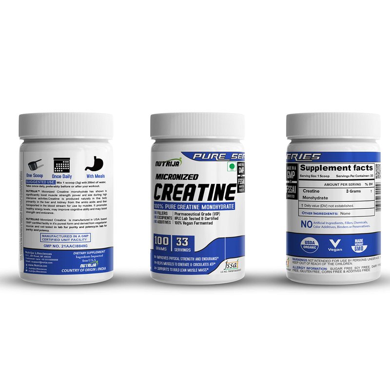 NutriJa Pure Micronized Creatine Monohydrate Powder- 100grams | Pre/Post Workout Supplement for Muscle Repair & Recovery
