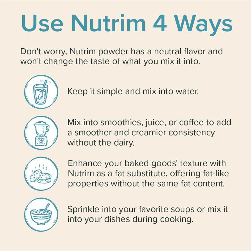 - EASY TO USE: Mix Nutrim into smoothies, juice, or milk. It adds a rich, creamy texture without altering the flavor.