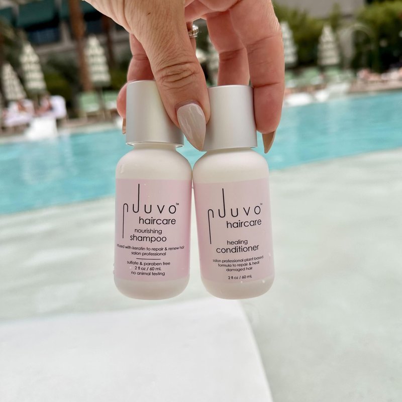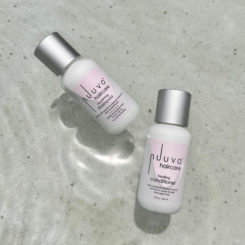 Revitalize and repair your hair with Nuuvo Haircare’s Salon Professional Nourishing Coconut Oil Shampoo & Healing Conditioner Set - a lightweight, plant based treatment to repair, clean, nourish & grow your hair. This weightless, moisturizing shampoo repairs the hair from within the hair shaft, promoting hair regrowth and scalp rejuvenation. Derived from nutrient-rich coconut, moringa seed, guar gum, keratin + other powerful nutrients that combine together to form a gentle formula that works to rebuild your hair.Nuuvo Haircare’s Healing Conditioner seals the cuticle of the hair, restoring hair integrity for maximum frizz control, moisture and vitality. The lightweight, keratin-infused conditioner restores elasticity for increased manageability and brilliant shine. Twelve plant extracts combine to create a powerful formula to protect your hair color for longer, while protecting your precious mane from harmful UV rays.Free of sulfates, paraben, gluten and animal by-products, Nuuvo Haircare Products are safe for you and your hair. Our unique blend of vegan-friendly ingredients is never tested on animals. Nuuvo Haircare was born on the salon floor, when 22-year industry veteran and celebrity hair stylist Raychel Harrison, could not find healthy haircare solutions to fulfill her clients needs. Raychel’s professionally developed formulas deliver a powerful boost to hair health, which rebuilds and revitalizes hair integrity, for salon-quality hair at home.