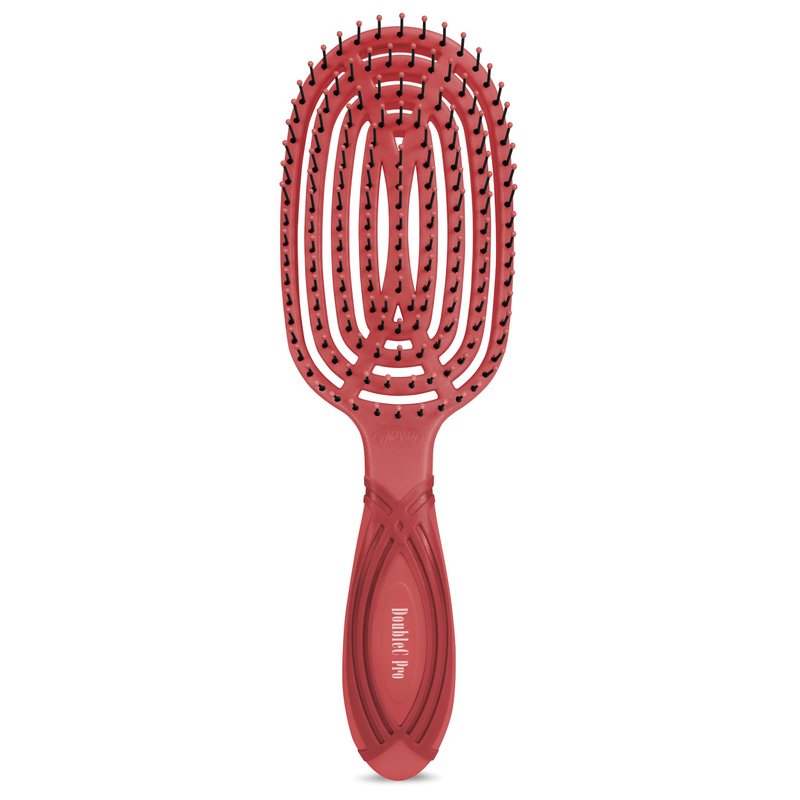 NuWay 4HAIR® DoubleC PRO® U.S. Patented Double Curved Detangling Brush is Hair Dryer Safe (Red)