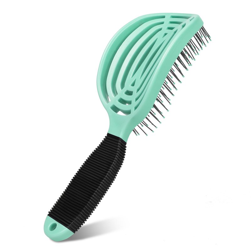 - Ergonomic shape increases blood flow. Our expertly designed brushes feature an ergonomic curved shape, made to fit your head and hands perfectly. Working to increase blood flow, our gentle brushes massage the scalp for your comfort and hair health.