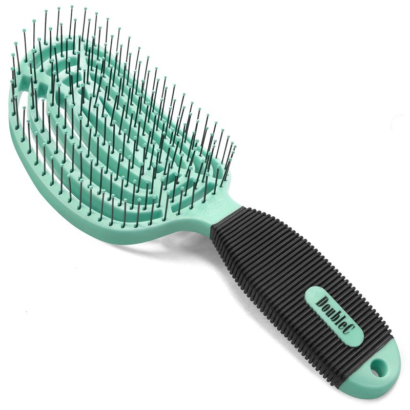 NuWay 4HAIR DoubleC U.S. Patented Double Curved Detangling Brush is Hair Dryer Safe (Mint Green)
