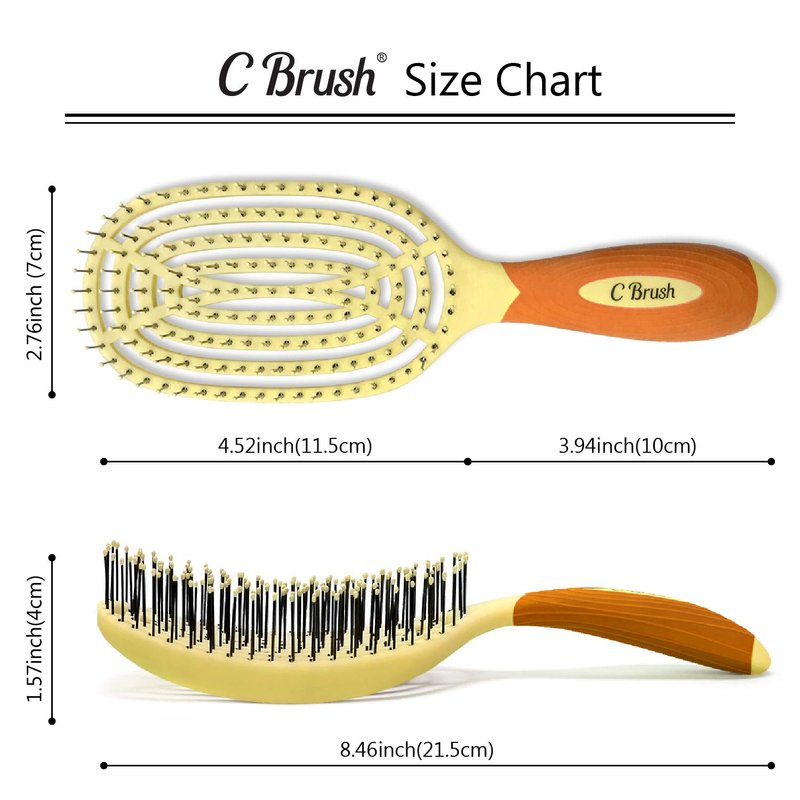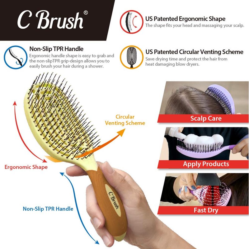 NuWay 4Hair® Patented Curved and Vented Hair Dryer Safe Detangling C Brush® (Toffy)