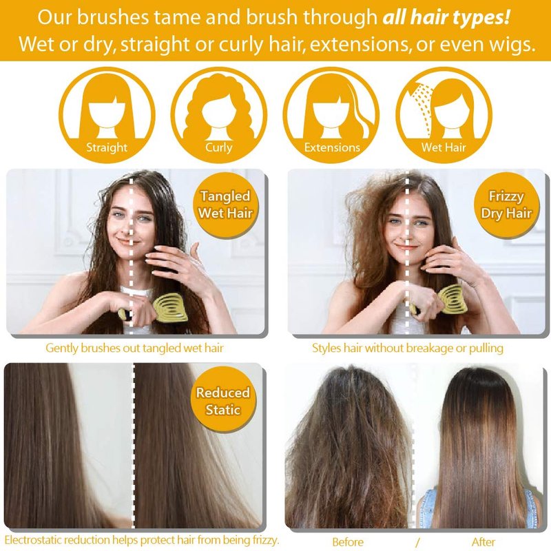 - Vented paddle body reduces dry time. Detangle and dry your hair with ease and minimal effort using our innovatively designed, patented hairbrushes. Our vented brush allows for optimal airflow and is designed to quickly and efficiently dry wet hair.