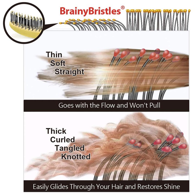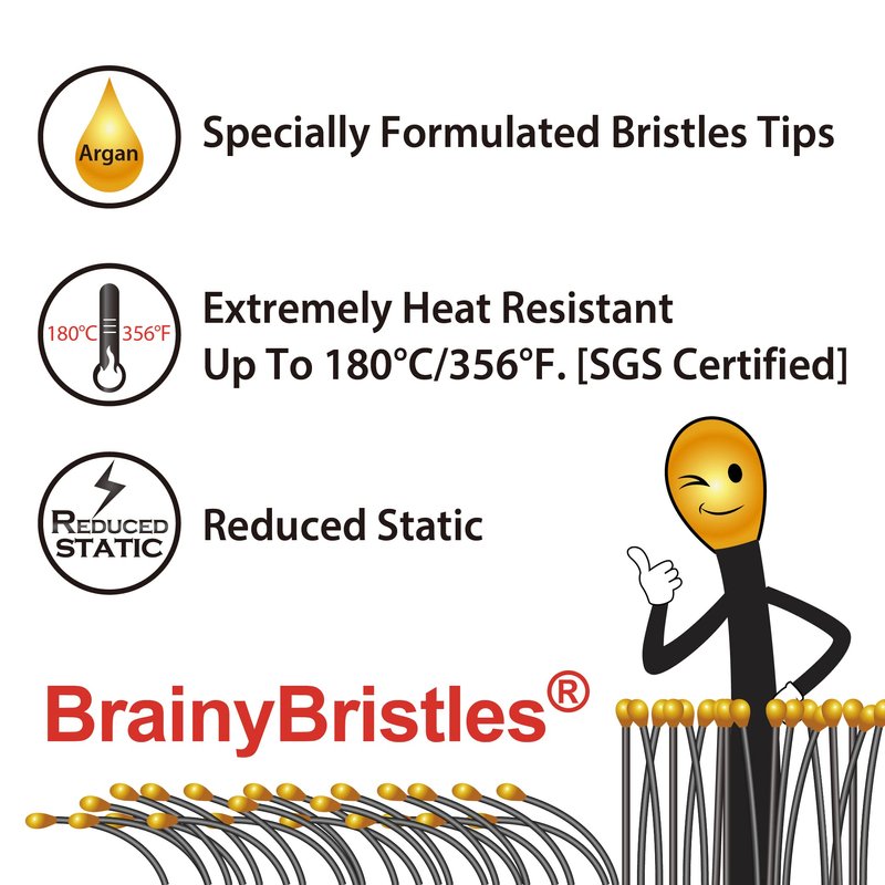 - Heat resistant hair brush bristles. Our brushes feature exclusive BrainyBristles, which are heat resistant to over 350 degrees Fahrenheit, making them the perfect addition to your styling tools. Blowdry and apply heat without worry of melting or warping. (Always use the diffuser on your dryer.)