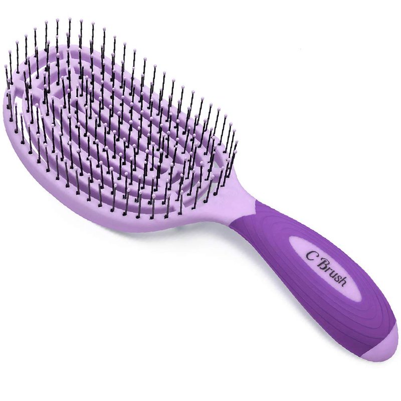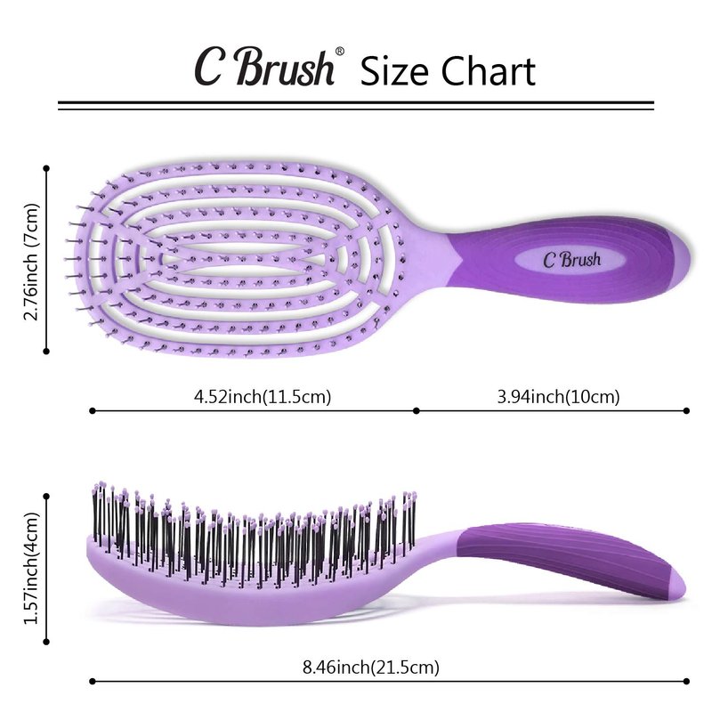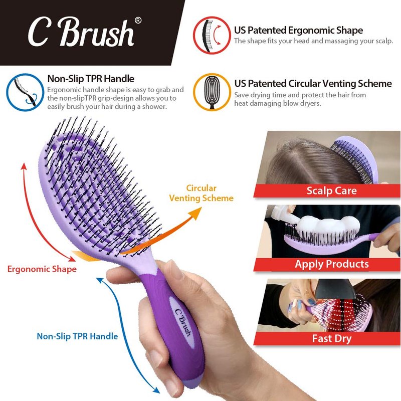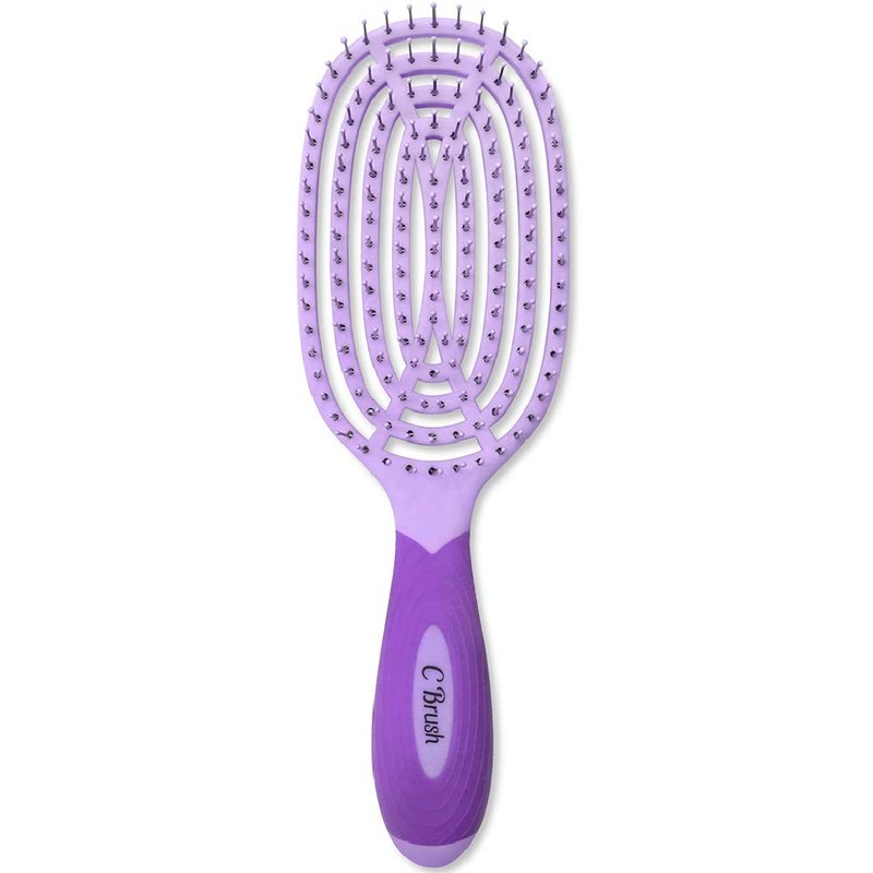 NuWay 4Hair® Patented Curved and Vented Hair Dryer Safe Detangling C Brush® (Violet)