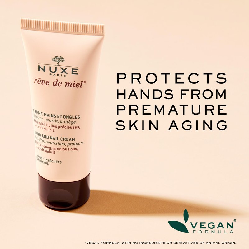 NUXE Rêve de Miel Honey-Infused Hand and Nail Cream - Instant Relief Moisturizer with Shea Butter, Almond Oil & Vitamin E for Dry Cracked Hands,1.7 oz