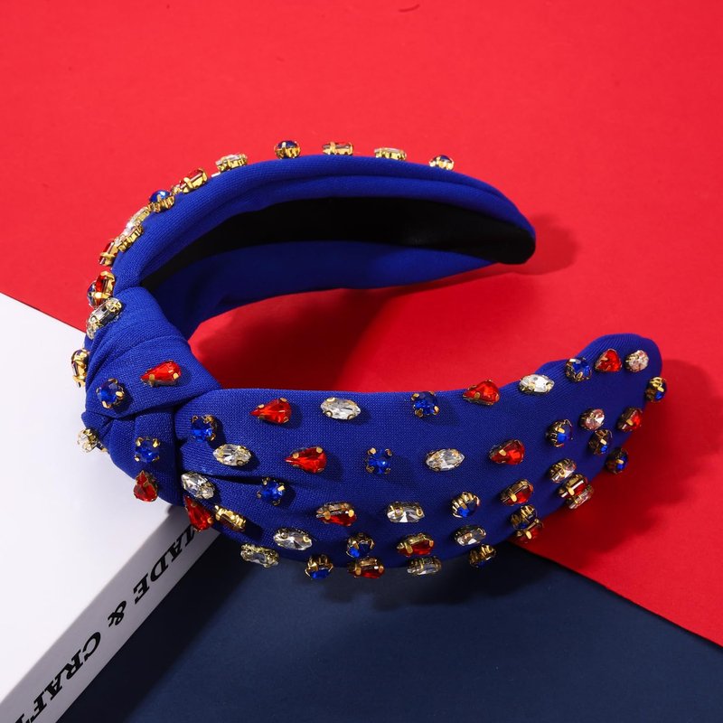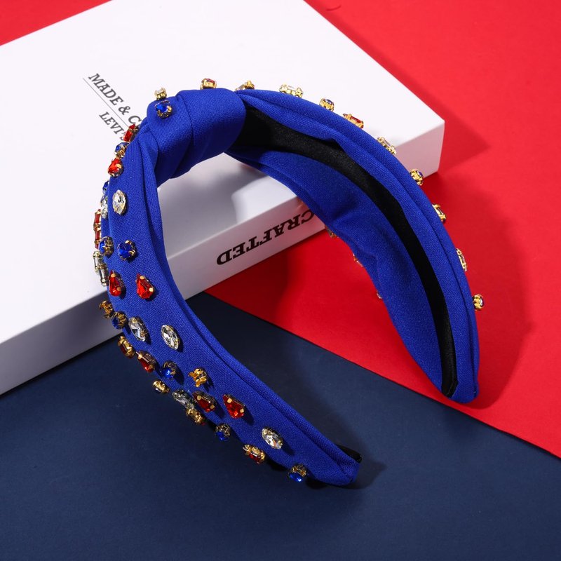 - ღ 4th of July Headbands: Pay tribute to your patriotism with these American Flag Headbands. The wide knotted headband features red/blue fabric accented with shinny crystals, pearls and rhinestones, a classic knot design on the top. Whether you’re joining patriotic parade, 4th of July parties or just want to add a little festive flair to your look, these delicate patriotic headband is a fun way to celebrate America holidays!