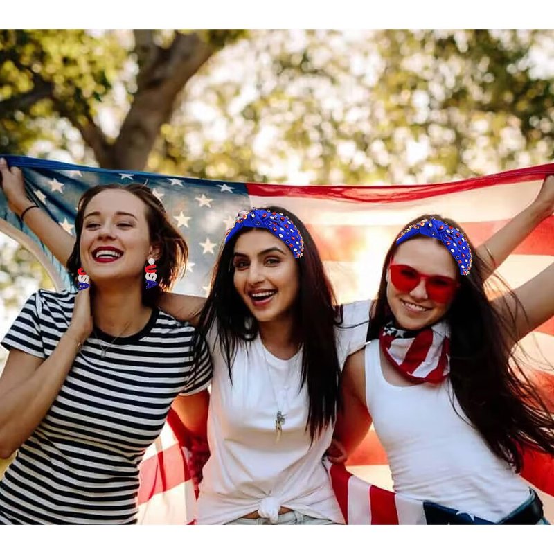 - ღ 4th of July Outfits for Women: God bless America! These amazing patriotic red, white and blue rhinestone 4th of July Knotted hairbands are perfect to wear on Independence Day, Fourth of July, National flag day, Memorial Day, Veterans, Election Parade, Labor Day, Election Day, Olympic, Holiday, any national holiday.. Festive and fun costume accessory that celebrates holidays and occasions throughout the year!