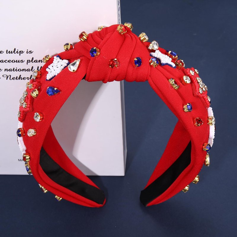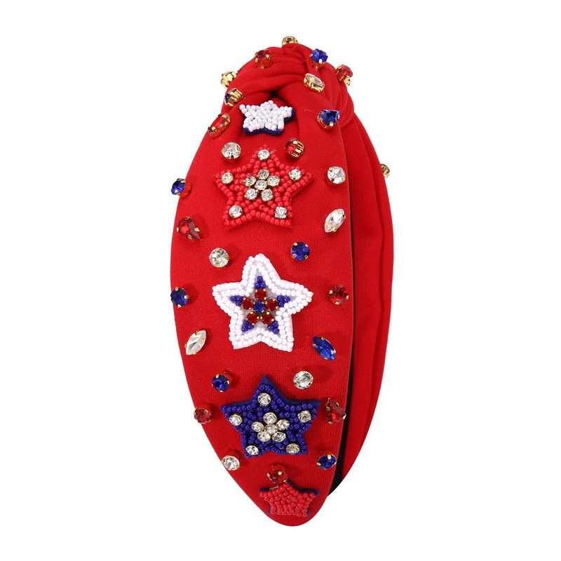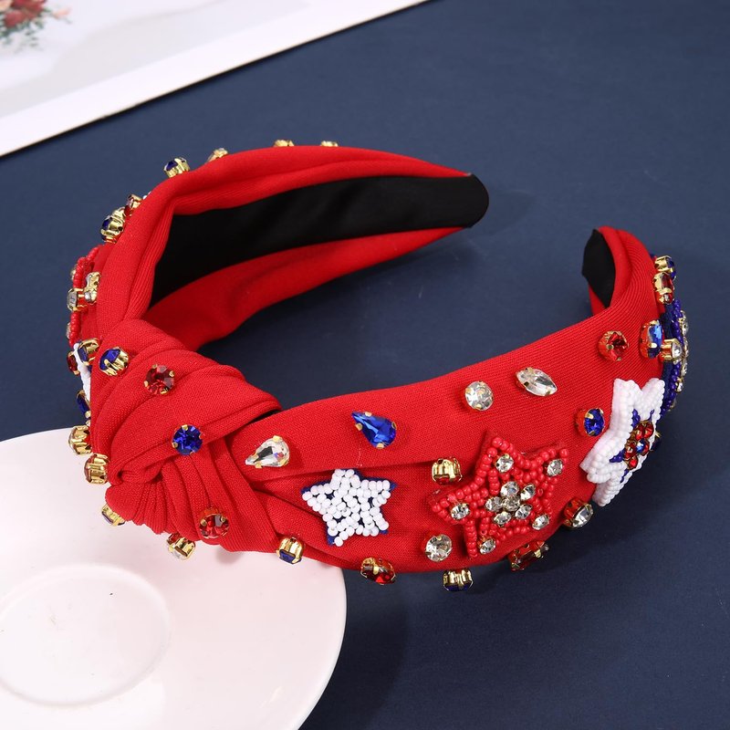 - ღ 4th of July Headbands: Pay tribute to your patriotism with these American Flag Headbands. The wide knotted headband features red blue white striped fabric accented with shinny crystals, pearls and rhinestone star charms, a classic knot design on the top. Whether you’re joining patriotic parade, 4th of July parties or just want to add a little festive flair to your look, these delicate American star headband is a fun way to celebrate America holidays!