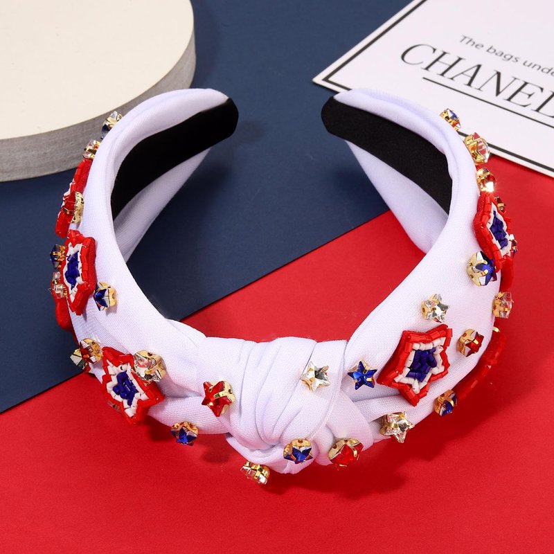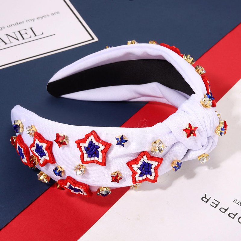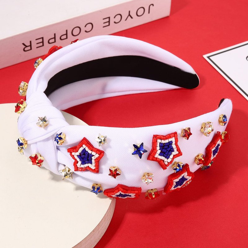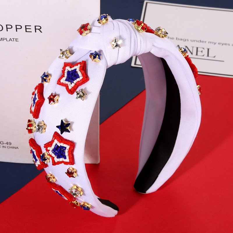 - ღ 4th of July Headbands: Pay tribute to your patriotism with these American Flag Headbands. The wide knotted headband features red blue white striped fabric accented with shinny crystals, pearls and rhinestone star charms, a classic knot design on the top. Whether you’re joining patriotic parade, 4th of July parties or just want to add a little festive flair to your look, these delicate American star headband is a fun way to celebrate America holidays!