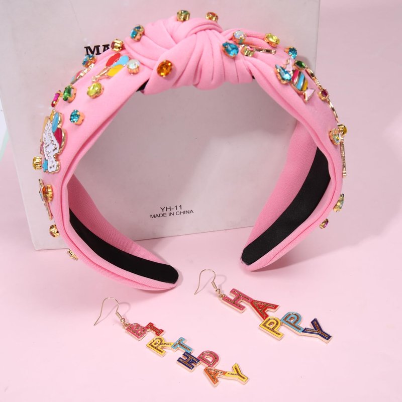 - ღ Birthday Headbands: Celebrate! It's your birthday! Get ready for your birthday party with these beautiful Birthday girl headbands! Features pink headband with top knot design and candy colored enamel birthday cake, star, balloon, birthday hat charms adorned, with sparkling rhinestone crystal embellishments. These birthday crown can adds a cute touch to the celebrations and ensures the birthday girl stands out on her special day
