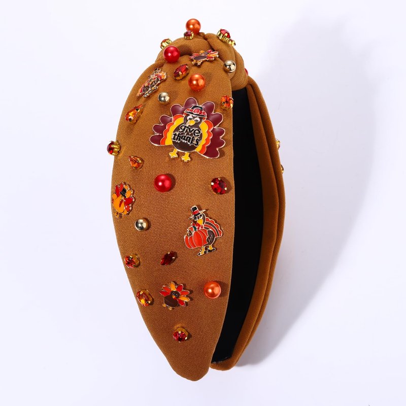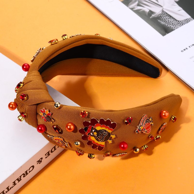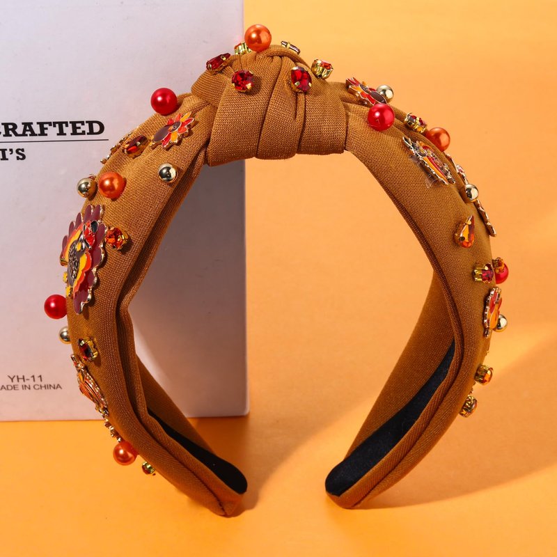 - ღ Thanksgiving Headband for Women: Show your Thanksgiving spirit wherever you go in our Thanksgiving accessories. Our orange wide top knot headband features cute beaded turkey charms, and shimmering baroque crystal pearl embellishments in yellow, orange, wine red colors. Whether you're hosting a family gathering or attending a Friendsgiving celebration, these beautiful jeweled knotted headbands are the perfect thanksgiving hair accessory to complete all your Autumn fall outfits