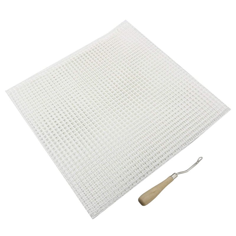 NX Garden 50x100cm Blank Rug Hooking Mesh and Bent Latch Crochet Hook with Wood Handle DIY Kit Tool for Tapestry Carpet Rug Making Embroidery Crafts Decor