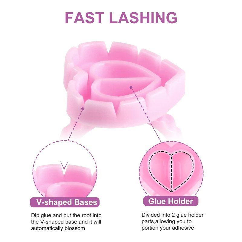 - ❤[ Lovely Shape & Special Design ]:INFILILA 100pcs Disposable Rings For Lashes with 10 V breaches and 2 glue holders which prevents the glue from spilling out.It has a very cute shape and can extend the glue drying time and maintain good performance.You can not only use it for eyelash extention but also use it for make up and nail art(When you are drawing on your nails or just put it on the polish bottle to distinguish the color or each bottle...)