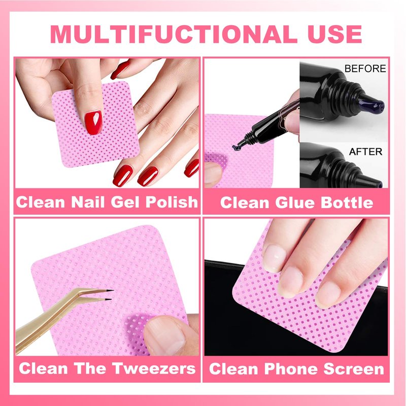 - SAFE AND HYGIENIC, EASY TO STORE: You will get 2 boxes of 400 pink square lint-free nail wipes. The special non-woven fabric ensures lint-free cleaning. A durable plastic case protects the wipes from falling apart after opening and is sealed to keep the wipes clean. The box size is suitable for traveling and carrying and can be reused to hold other supplies. Ample quantity of wipes to meet daily needs.