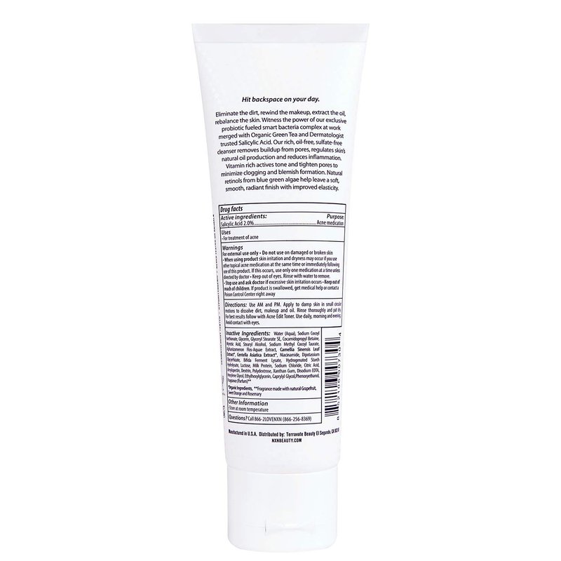 Hit Backspace on your day. Eliminate the dirt, rewind the makeup, rebalance the skin. Witness the power of our exclusive probiotic fueled smart complex at work merged with Organic Green Tea and Dermatologist trusted Salicylic Acid. Our rich, oil-free, sulfate-free cleanser helps to remove buildup from pores and reduce blemish formation. The natural retinols from blue green algae help leave skin with a softer, smoother and more radiant finish.