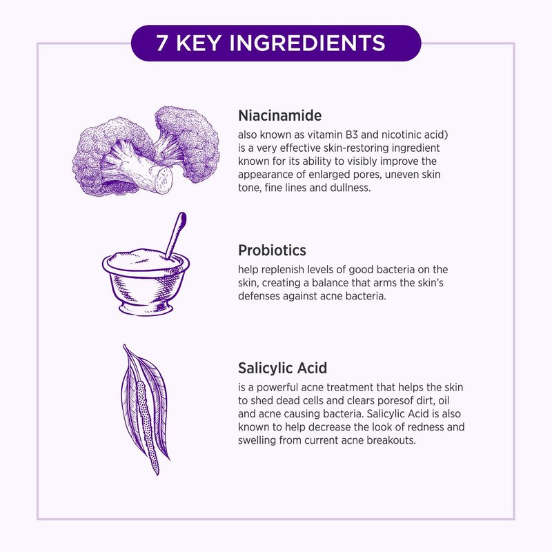 - Probiotic Smart Complex replenishes the good on the skin, and helps defend against breakouts