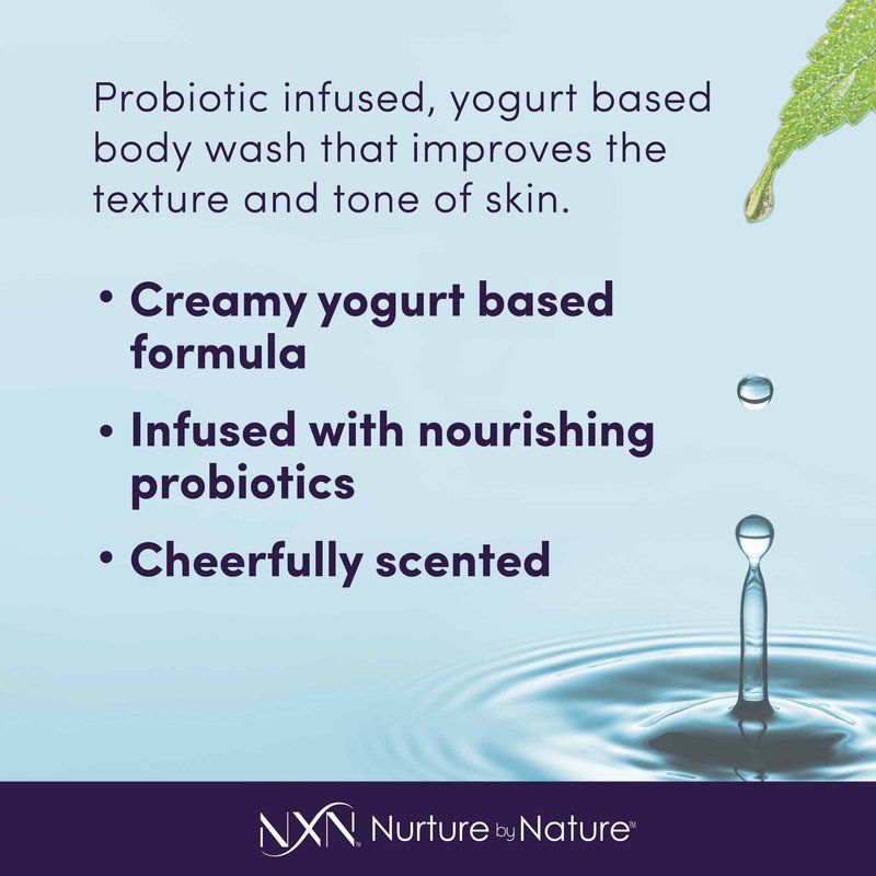 - Probiotic infused, yogurt based body wash that improves the texture and tone of skin