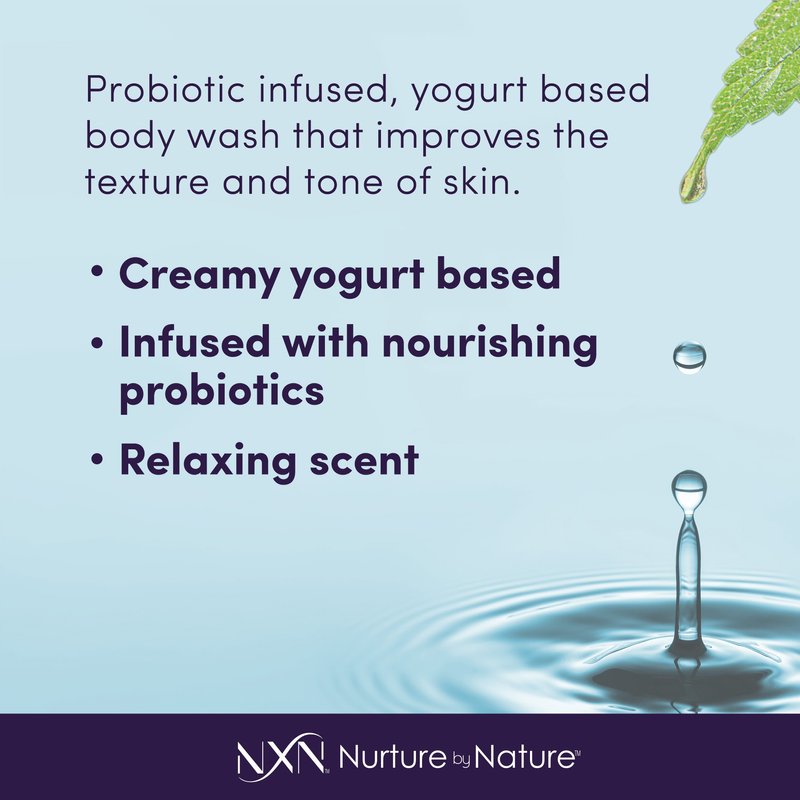 - Probiotic infused, yogurt based body wash that improves the texture and tone of skin