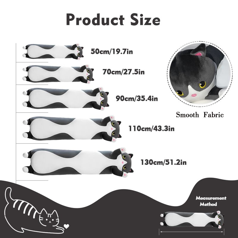 - LONG CAT PLUSHIE--the cat body pillow is made of high quality PP fabrics padding,good elasticity, no deformation when you pulled it,very full, soft and fluffygiving you super comfortable enjoyment