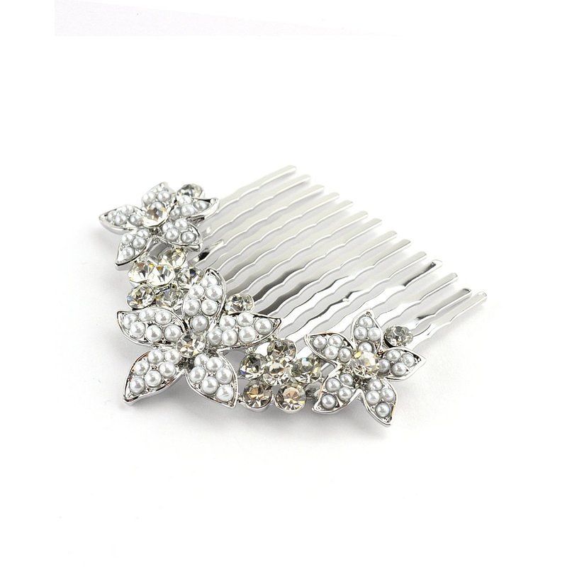 NYFASHION101 Women's Elegant Bridal Rhinestone Flower Pattern Hair Comb HC4260, Simulated Pearl, Silver-Tone