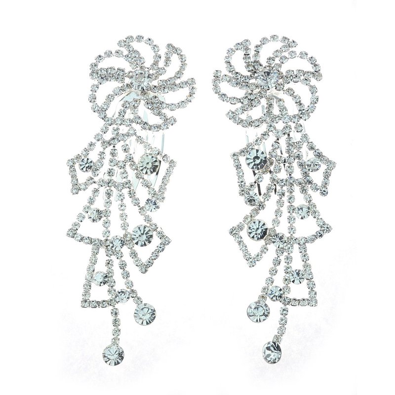 NYFASHION101 Women's Rhinestone Studded Floral Pin Wheel Pair Hair Comb NHCY2004SY