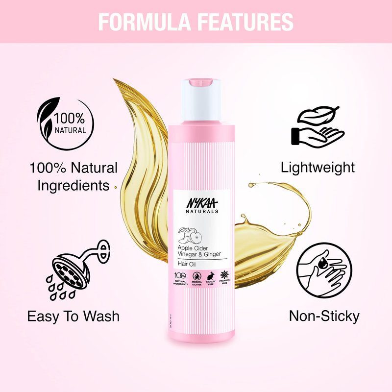 - Nykaa’s Apple Cider Vinegar & Ginger Hair Oil is formulated with 100% natural ingredients that combat dandruff and clarify the scalp of impurities