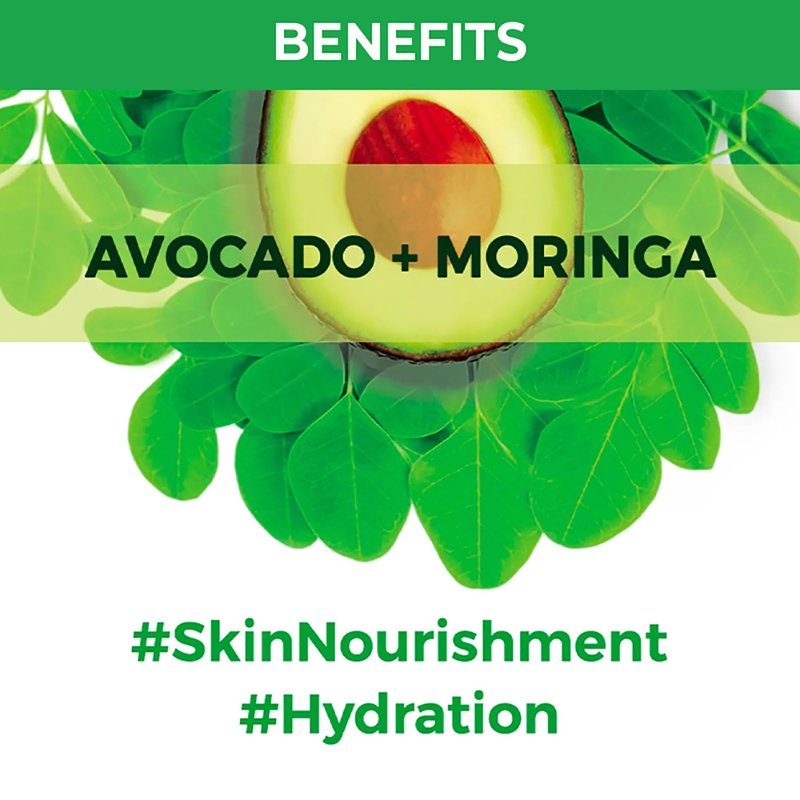 - FOR NOURISHED AND HYDRATED SKIN. Avocados penetrate the skin to soften and hydrate the face, and diminish the appearance of fine lines and wrinkles. Moringa is rich in vitamins, providing intense hydration while drawing out blemishes and blackheads.