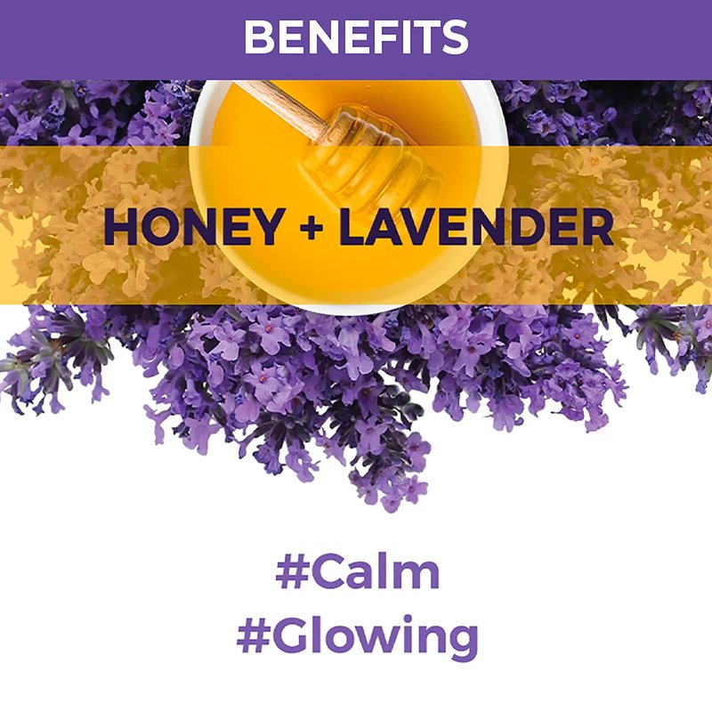 - FOR CALM AND GLOWING SKIN. Honey is rich in antioxidants, softening and conditioning the skin, and is great for promoting healthy cell growth. Lavender reduces dark spots and fine lines while toning and hydrating, while improving your skin's texture.
