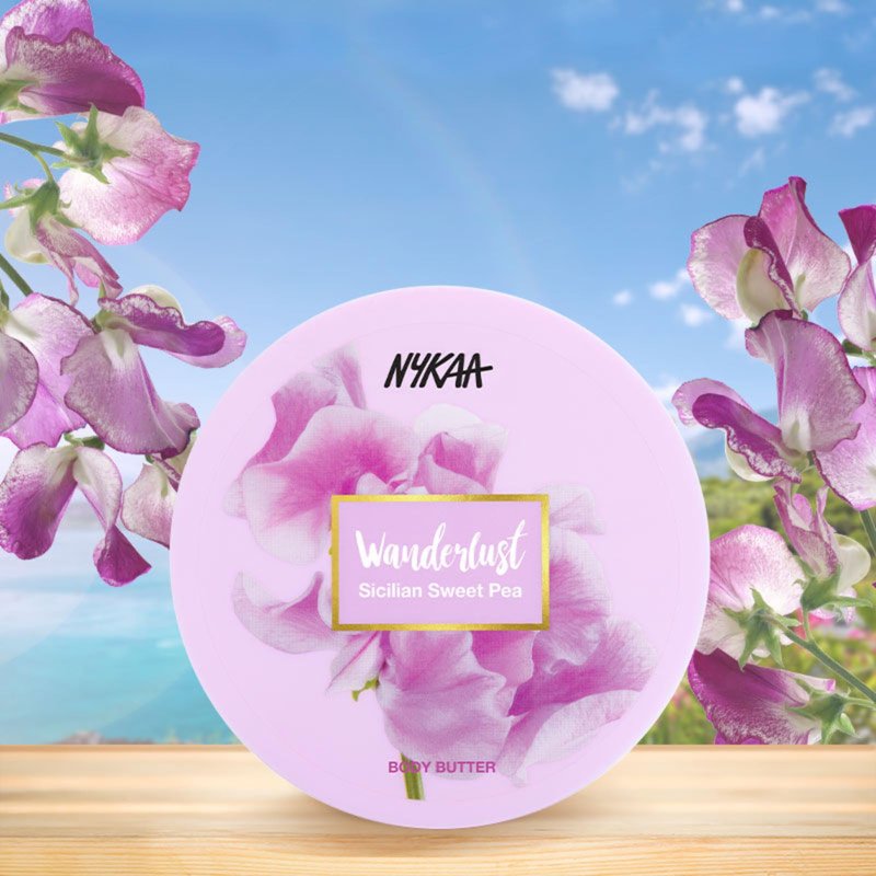 Nykaa Naturals Wanderlust Body Butter - Enriched with Shea, Cocoa Butter, and Almond Oil - Vegan, Cruelty-Free - Sicilian Sweet Pea - Vegan - 6.7 oz