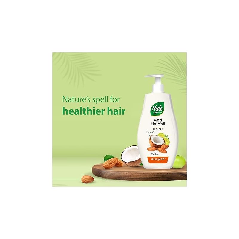 - Nyle Naturals Anti-Hairfall Shampoo, With Coconut Milk, Badam and Amla, Gentle & Soft Shampoo, pH Balanced and Paraben Free,For Men and Women, 800ml
