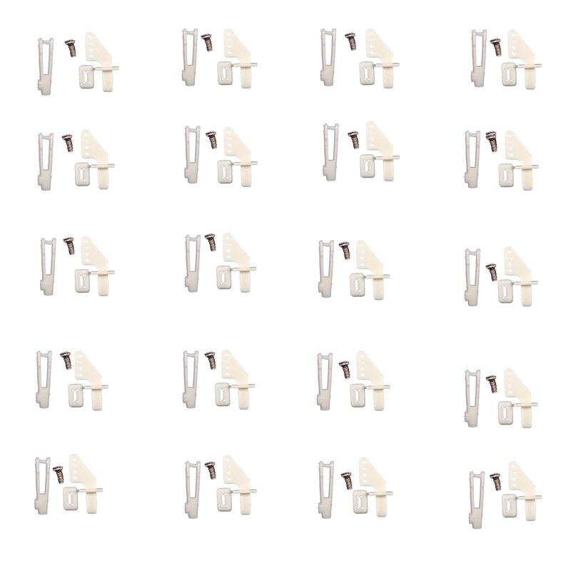 20 4-hole nylon control horns with 20 U-clamps and 320 screws, used for remote control of KT model aircraft parts and accessories. Packing quantity: four-hole rudder angle 20+U-clamp 20+screw 20. Material: nylon Color: white Product packaging weight: 0.04 lbs. Product packaging size: 2.8X3.9X0.8 inch
