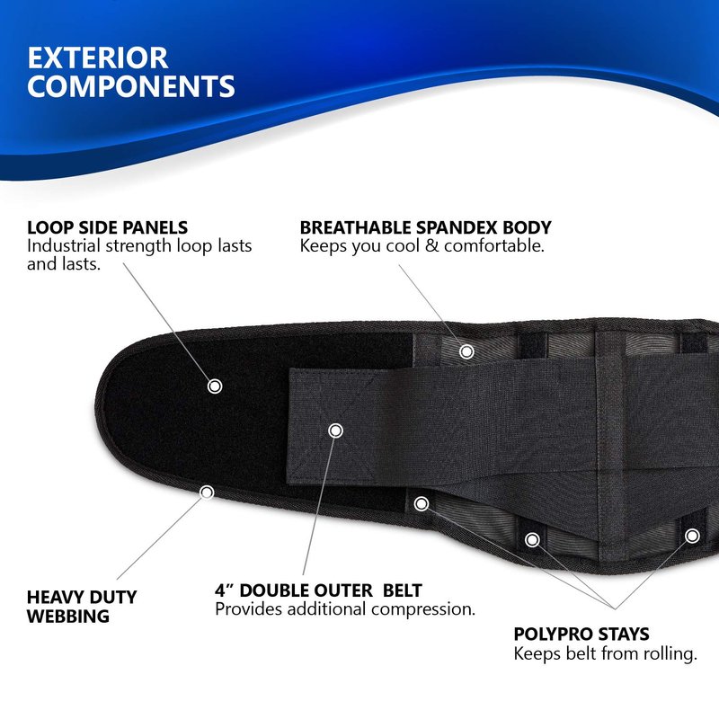 - QUALITY INDUSTRIAL BELT: back belts for back pain are good for Manual labor jobs that are demanding on your lower back, such as construction work, are tough and sometimes painful. Give your back the help and support it needs on site by wearing a back support belt for men & women. Other workers that have benefited from the NYOrtho back brace are nurses, landscapers and gardeners, store clerks, desk jobs, and warehouse workers.