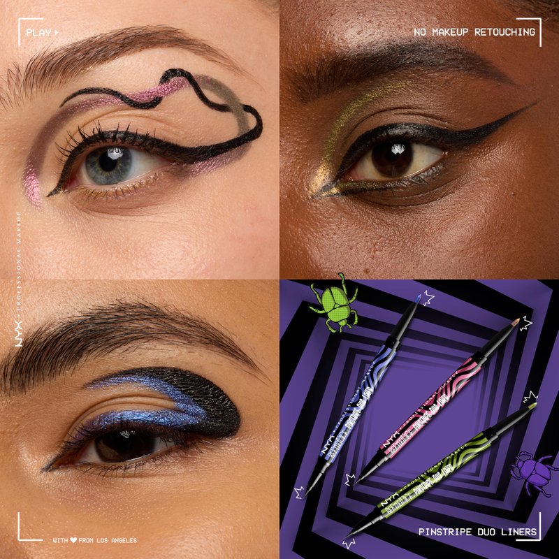 - Pinstripe Duo Liner: Step out of the waiting room and into the afterlife with these transformative, eye-popping shades. Featuring 3 new, limited edition dual-ended black eyeliner and chrome eyeliners inspired by the new movie, BEETLEJUICE BEETLEJUICE