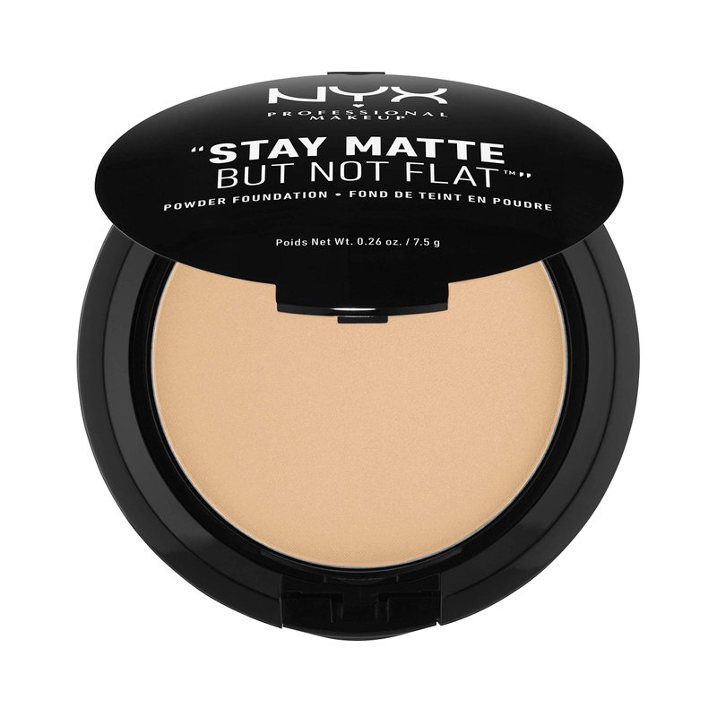 - Matte Powder Foundation: This NYX Professional Makeup pressed powder foundation offers lightweight, buildable coverage that evens skin tone, covering imperfections and leaving behind a gorgeous matte finish