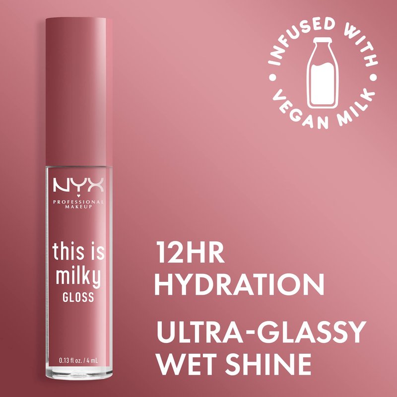 - Just one swipe: NYX lip gloss delivers a buildable splash of milky color with an ultra-glassy wet shine that can be layered for more saturation. Build the gloss with this lip moisturizer. Available in many soft shades from nude lip gloss to chocolate brown.
