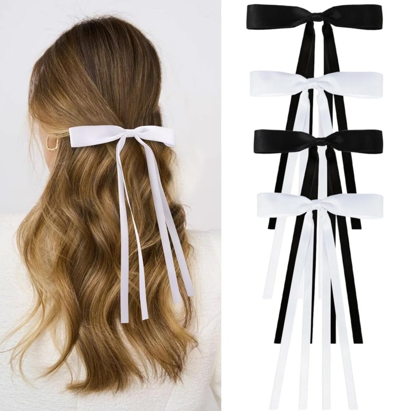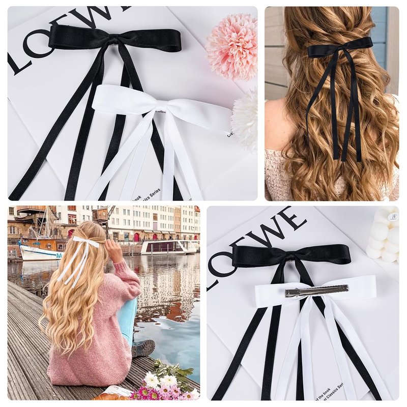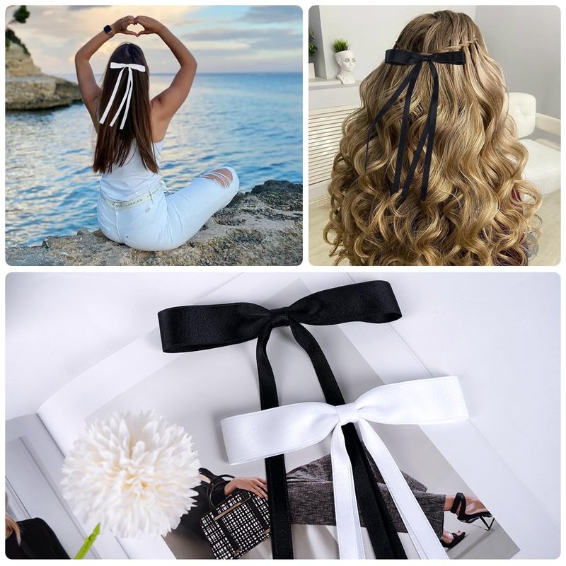 - ✨ Size & Packing : Bow Hair Clips Made of ribbon and metal clips with long tails. Suitable for women and girls daily wear. 4.1*2.75 inches(Length*width),Black*2&White*2.