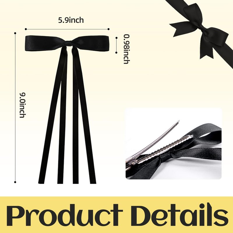 - 🎀 Fashion Style : Hair clips feature cute bows and long tails, the metal clips will hold your hair firmly in place. Make all kinds of hairstyles as charming as possible, especially suitable for thick or curly long hair. You will get a lot of compliments when you wear this tassle long tail bow hair clip.