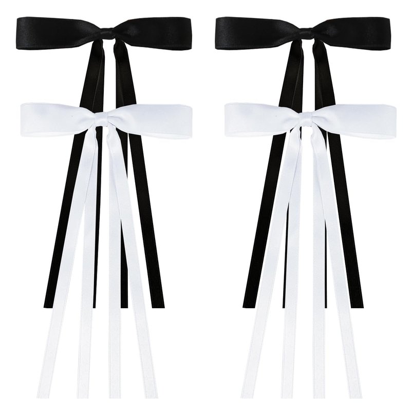 NYXXZ Bow Hair Clips for Girls, 4Pcs Tassel Bow Long Tail Hair Clips Ribbon Bowknot Hair Bow, Women's Hair Clips Ribbon Hair Ties Barrettes Hair Accessories (Black and White)